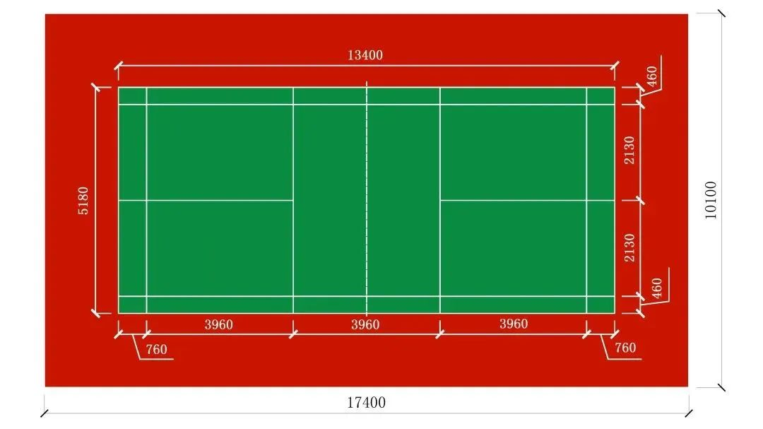 双打主场:长13.4米×宽6.1米,面积81.74㎡