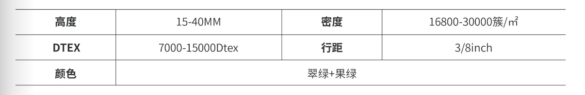 外观更接近天然草,具有高仿真性、 高耐磨性;抗UV耐老化,安全无毒,健康环保;同时具有良好的防晒隔热效果,铺装效果美观自然,在视觉上媲美天然草。适用于庭院绿化、屋顶花园、商业绿化、幼儿园、休闲器材区等。